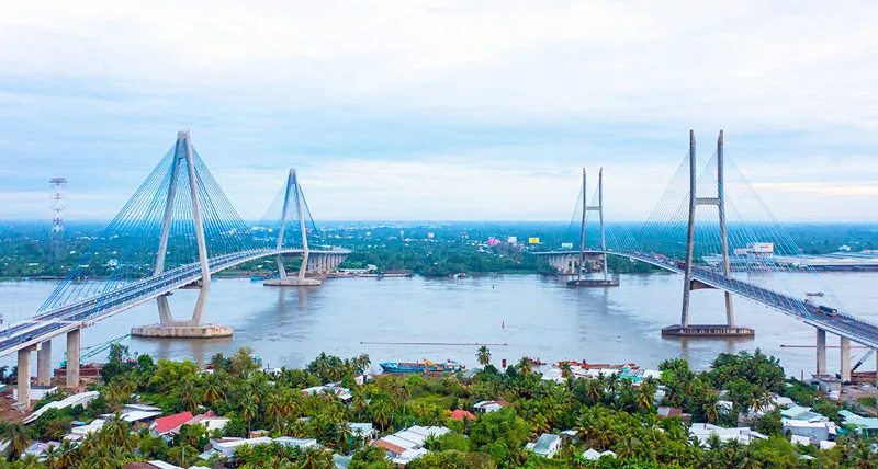 Cầu Mỹ Thuận là cây cầu dây văng đầu tiên tại Việt Nam được khánh thành vào năm 2000 với sự hỗ trợ từ chính phủ Úc. Với thiết kế ấn tượng gồm hai tháp cầu hình chữ H và chiều dài hơn 1,5km, cầu Mỹ Thuận không chỉ là tuyến giao thông quan trọng mà còn là điểm check-in nổi bật của Vĩnh Long.
