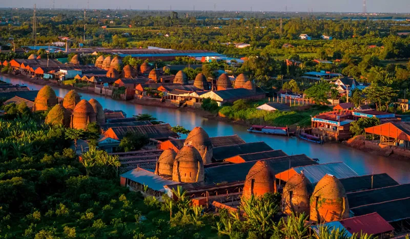 Nằm dọc sông Cổ Chiên, làng gốm Mang Thít sở hữu hàng trăm lò nung gạch cao vút, tạo nên cảnh quan đặc trưng của vùng đất “Vương quốc đỏ”. Du khách có thể tìm hiểu về quy trình làm gốm truyền thống và trải nghiệm tự tay tạo hình sản phẩm gốm.